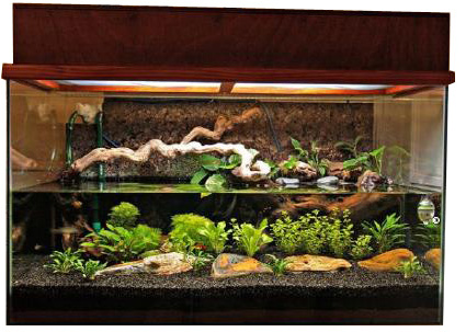 45 literes akvaterrárium megfelel 4 egyednek, félig töltsük vízzel.